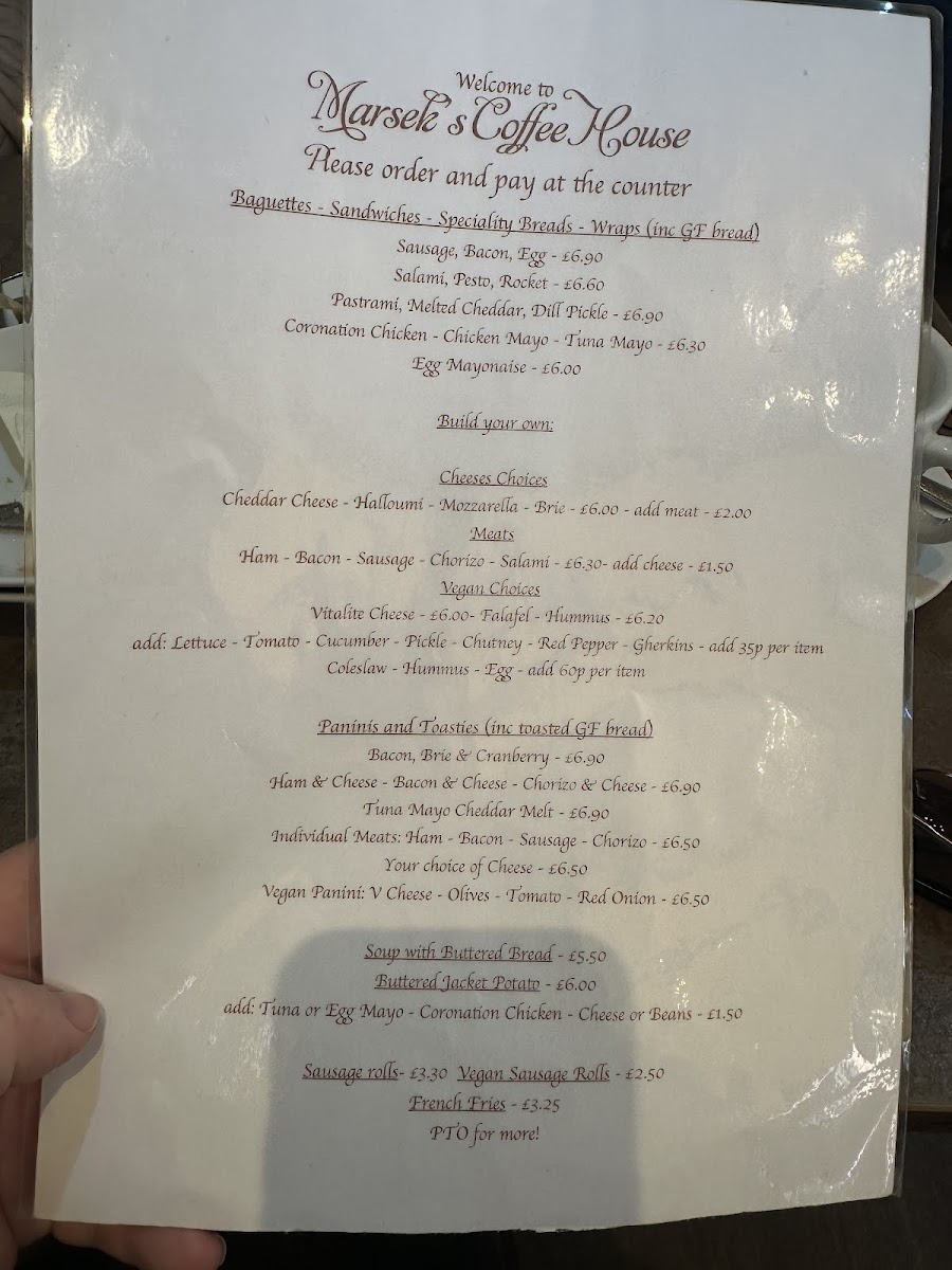 Marsek’s menu is a treasure trove of tempting options. Patrons rave about the mouthwatering sandwiches, particularly the coronation chicken baguette that Nicole Kristensen couldn't stop talking about - it’s reportedly the best she’s ever had! With dishes like the savory bacon sausage baguette and a rich chicken soup, you’ll find yourself savoring every bite. The café’s sweet offerings, including a spectacular chocolate cake perfect for pairing with a cream tea, are not to be missed either. The customer reviews reflect a consistent theme: each dish is prepared with care, capturing both flavor and freshness, making this cafe a culinary delight.